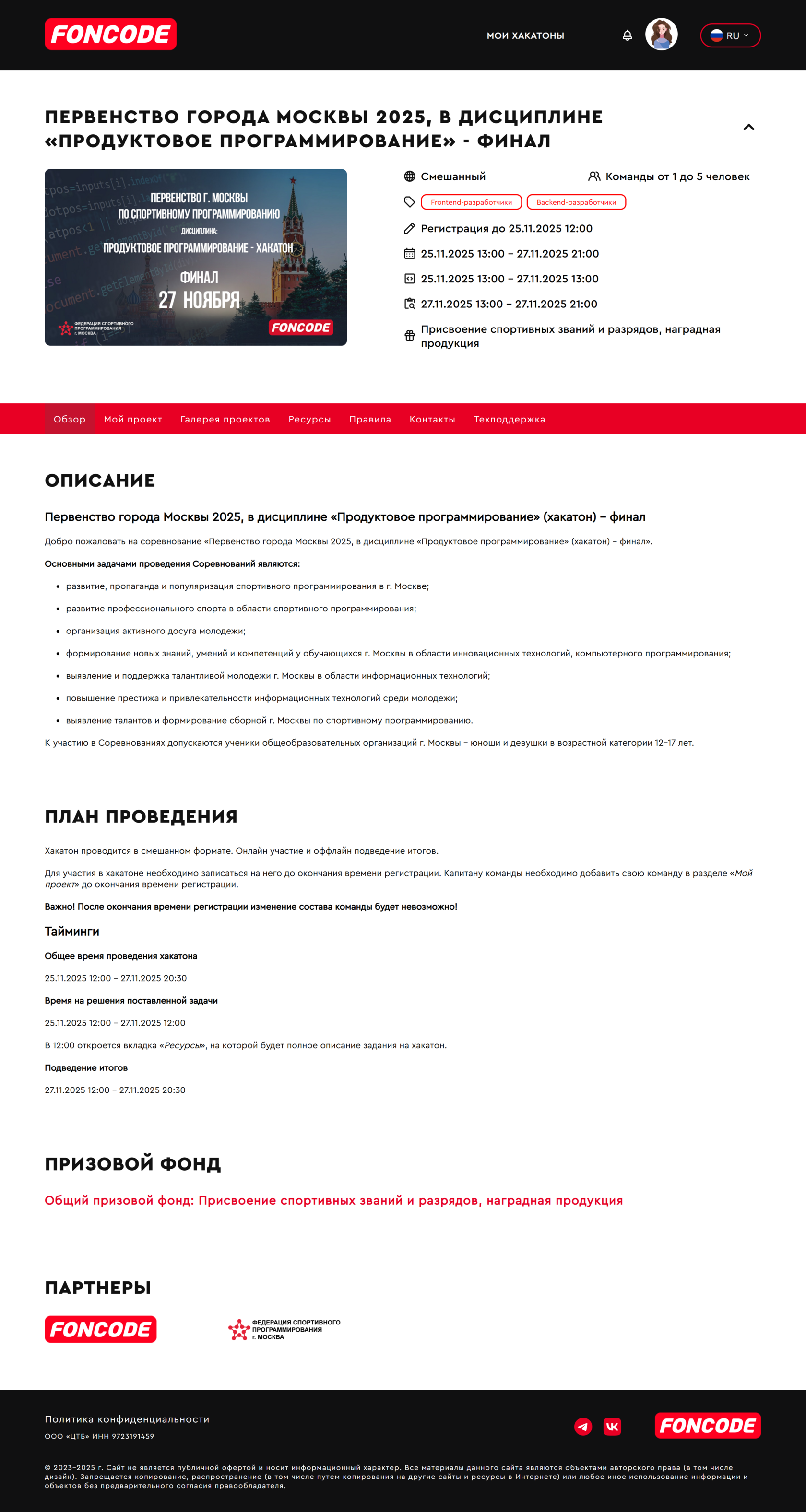Запущена платформа для хакатонов. Проект перешел из стадии концепции в рабочее состояние, обеспечивая удобный каталог событий для IT-сообщества
